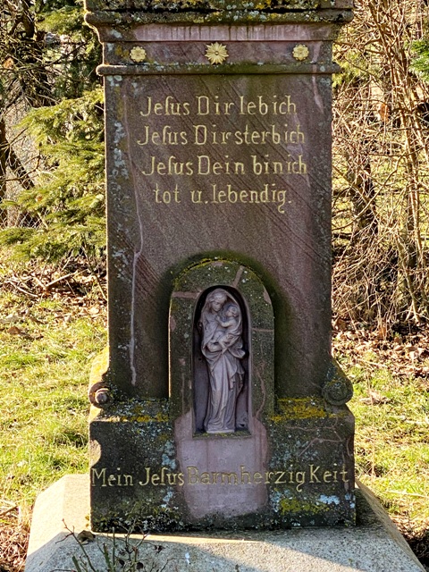 der Bildstock mit einer Pietà. Der Bildstock selbst ist etwas