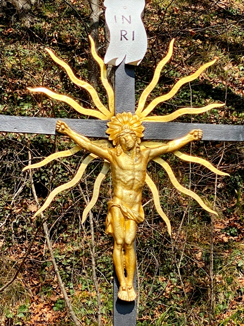 Metallkreuz im Gebüsch oberhalb von Weissenau an der Fidazhofer Steige
